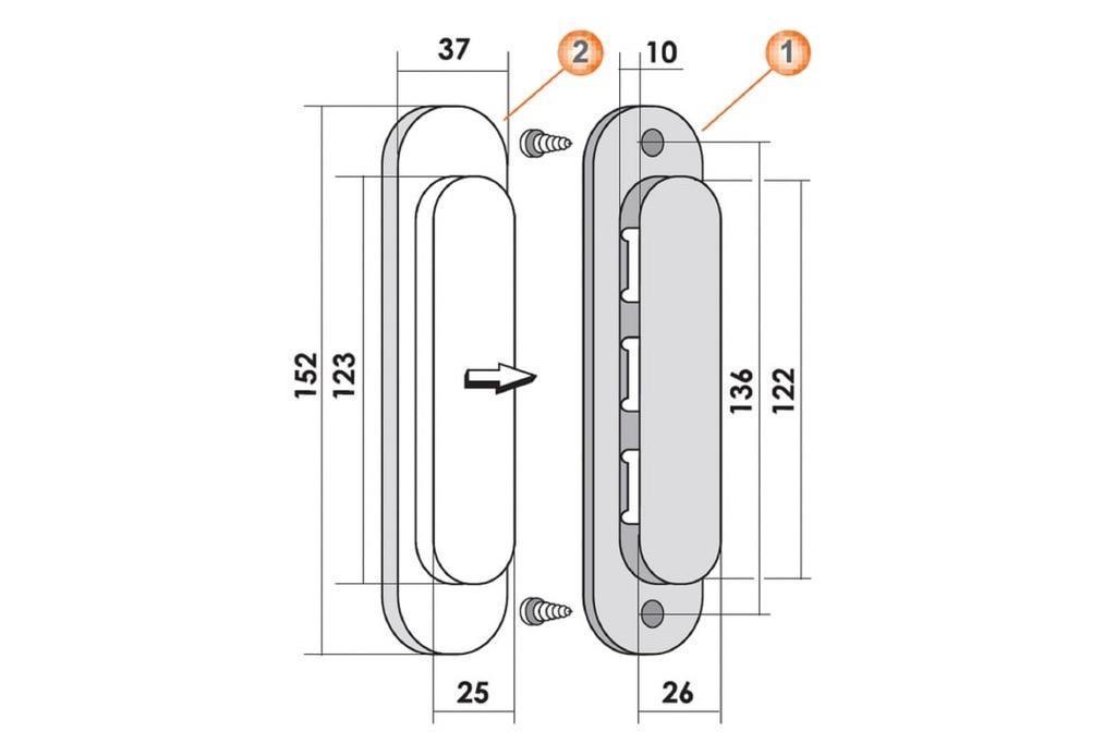 Дверная ручка для раздвижных дверей — это фурнитура для раздвижных дверей, подходящая как межкомнатным створкам, так и мебели, например, шкафам-купе, в комплекте 1 шт.