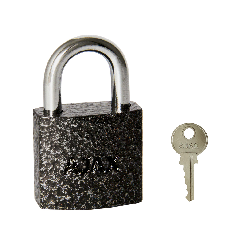 Навесной замок Ajax серии PD-01 предназначен для запирания внешних и внутренних дверей, оснащенных проушинами. Чугунный корпус с антикоррозийным покрытием, закаленная дужка, автоматическое запирание, 3 английских ключа в комплекте. Упакованы в пакет. Гарантия 12 месяцев.