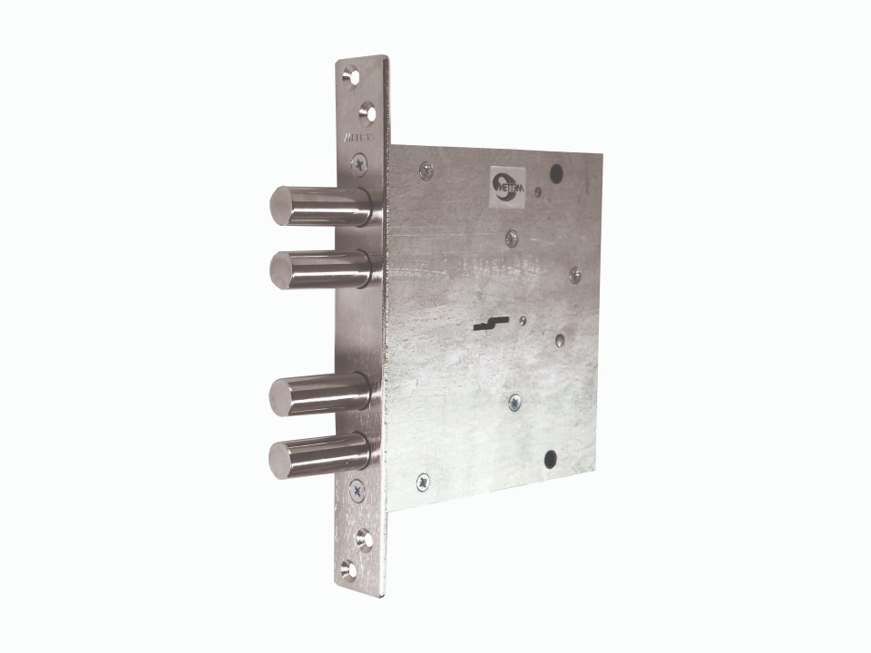 Врезной сувальдный замок ЗВ8 141.0.1 с 10-ю сувальдами, сертифицированная в соответствии с 4-м классом безопасности. Рекомендуется к установке во все типы входных дверей (металлические, стальные, бронированные). В результате проведённой модернизации данные замки получили значительные усовершенствования. В частности, был разработан новый механизм секретности, благодаря чему удалось добиться исключительно высоких показателей по стойкости механизма к вскрытию неразрушающими методами. Кроме этого, изменился и ключ замка при сохранении фирменной формы разнесённых бородок (т.н. ключ-бабочка). Корпус модернизированных замков выполнен из оцинкованной стали толщиной 2 мм. Данные замки запирают дверь четырьмя стальными ригелями диаметром 16 мм, которые выдвигаются из корпуса замка на 40 мм. В одном из ригелей закалённый стальной стержень, обеспечивающий защиту от перепиливания.