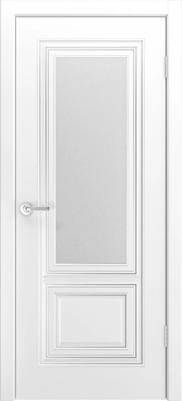 Дверь Фави В0 ДО имеет каркасно-щитовую конструкцию с фрезерованной поверхностью полотна, имитирующей филенки. Фигурная фрезеровка на «филенках» отсутствует. Остекление сатинированное. Модель покрыта эмалью.
