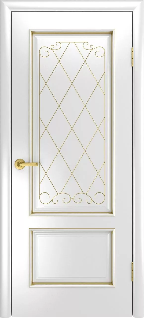 Дверь Голд-1 ДГ имеет сборную конструкцию с фрезерованной поверхностью полотна. Также доступна узорная фрезеровка на филенках с одной или двух сторон. Накладной багет можно сделать на выбор с фрезеровкой «косичка» или без нее. Модель покрыта эмалью.
