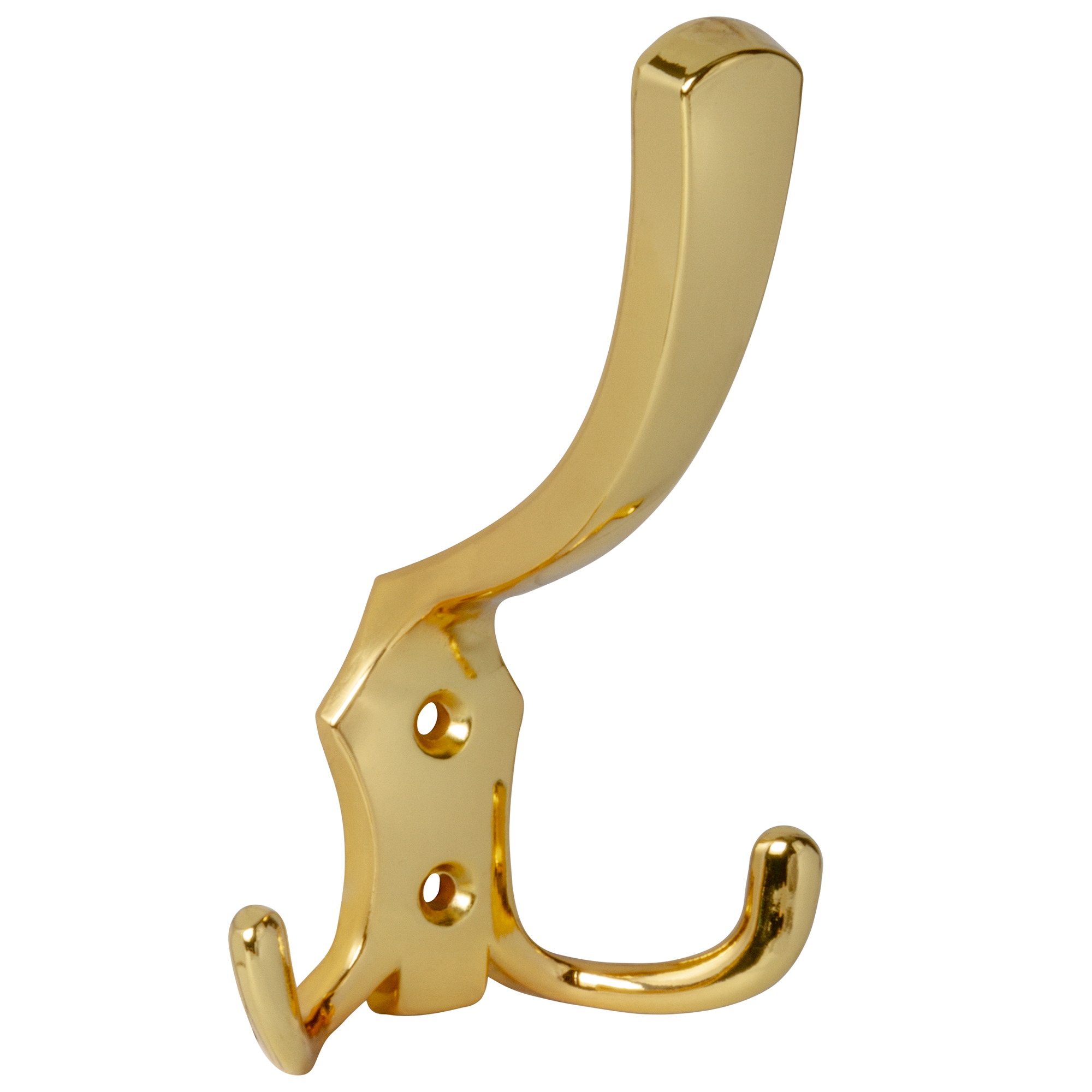 Крючок трёхрожковый настенный MB-K-003 бренда AJAX предназначен для подвешивания одежды и предметов обихода. Подходит для всех типов стен и любого интерьера. Крепится к несущей деревянной поверхности при помощи саморезов, для монтажа на иные поверхности необходимо использовать дюбели. Рекомендованная предельная нагрузка на крючок MB-K-003 до 12 килограммов.Выполнен из цинкового сплава (ZAMAK) с гальваническим покрытием. Допускается эксплуатация во влажной среде. Упаковка: цветной пакет. Цвет: золото.Комплектация: крючок - 1 шт,  саморезы - 2 шт., дюбели в комплект не входят.