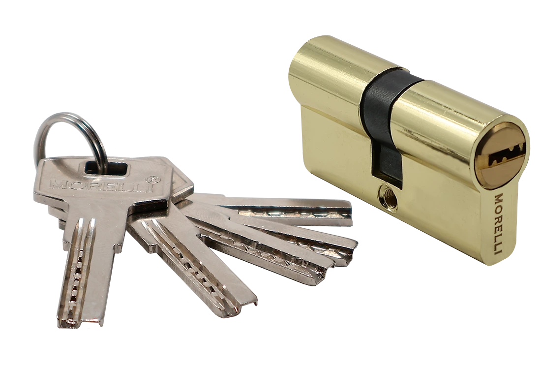 Ключевой цилиндрповышенной секретности для двери вставляется в замок или защелку для закрытия ключом с одной стороны помещения и поворота кноба с другой, дополняя общую конструкцию.