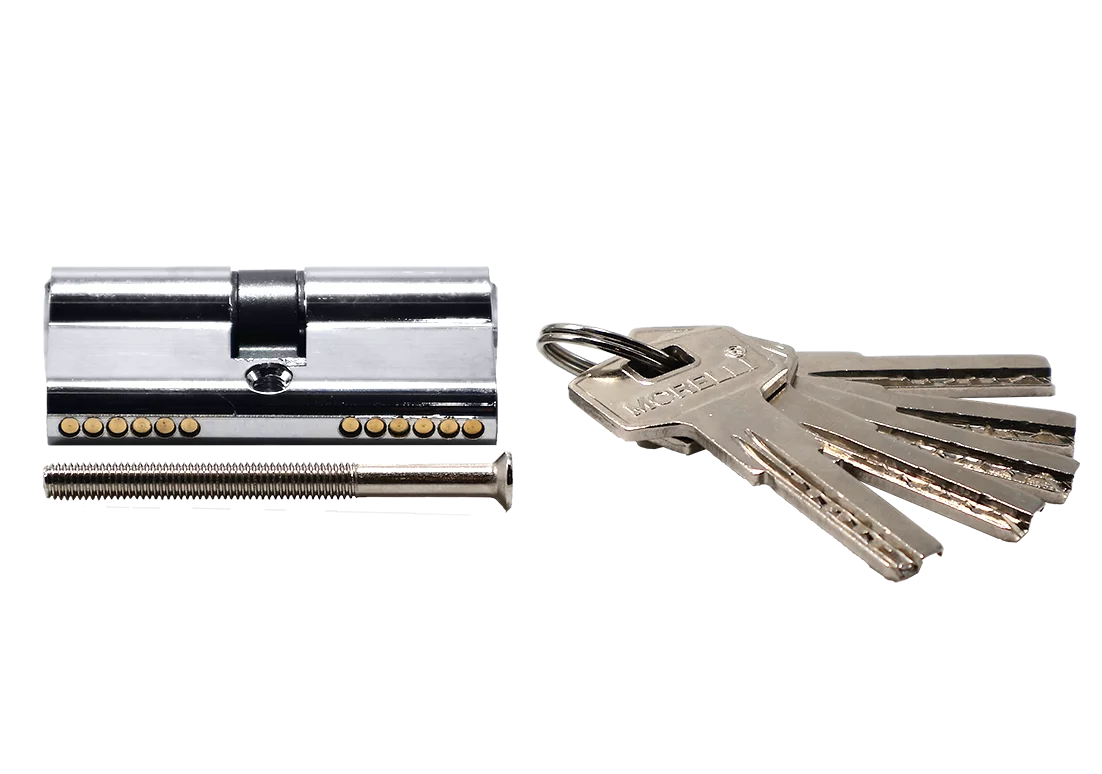 Ключевой цилиндрс заверткойдля двери вставляется в замок или защелку для закрытия ключом с одной стороны помещения и поворота кноба с другой.