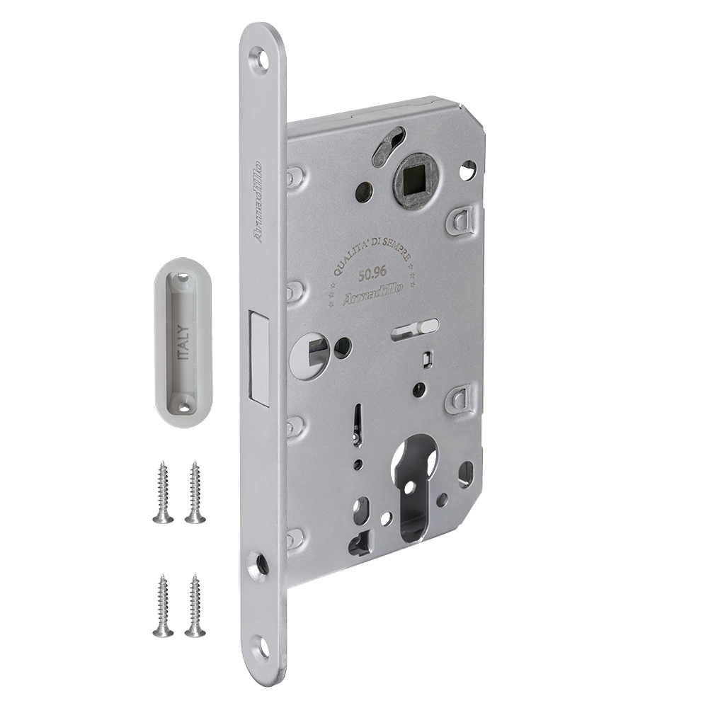 Магнитные межкомнатные замки Armadillo GRAVITY - симбиоз итальянского дизайна и современных технологий. Абсолютная бесшумность работы достигается за счет магнитного механизма, срабатывающего только при закрывании. В остальное время защелка утоплена в полотно. Такая конструкция делает торец более эстетичным и продлевает срок службы самого изделия. Уникальная форма ответной планки со скошенными краями гарантирует идеальное сцепление и плавное закрывание. Доступны два размера планки: 190 и 196 мм. Подходят для установки на деревянные межкомнатные и сантехнические двери левого и правого открывания с толщиной полотна от 35 мм. Совместимы с основными типами цилиндровых механизмов.