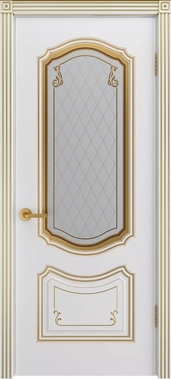 Дверь Соло Грейс В2 ДО имеет каркасно-щитовую конструкцию с фрезерованной поверхностью полотна, имитирующей филенки. Также имеется фигурная фрезеровка на «филенках». Остекление на выбор сатинированное или с фотопечатью. Модель покрыта эмалью.