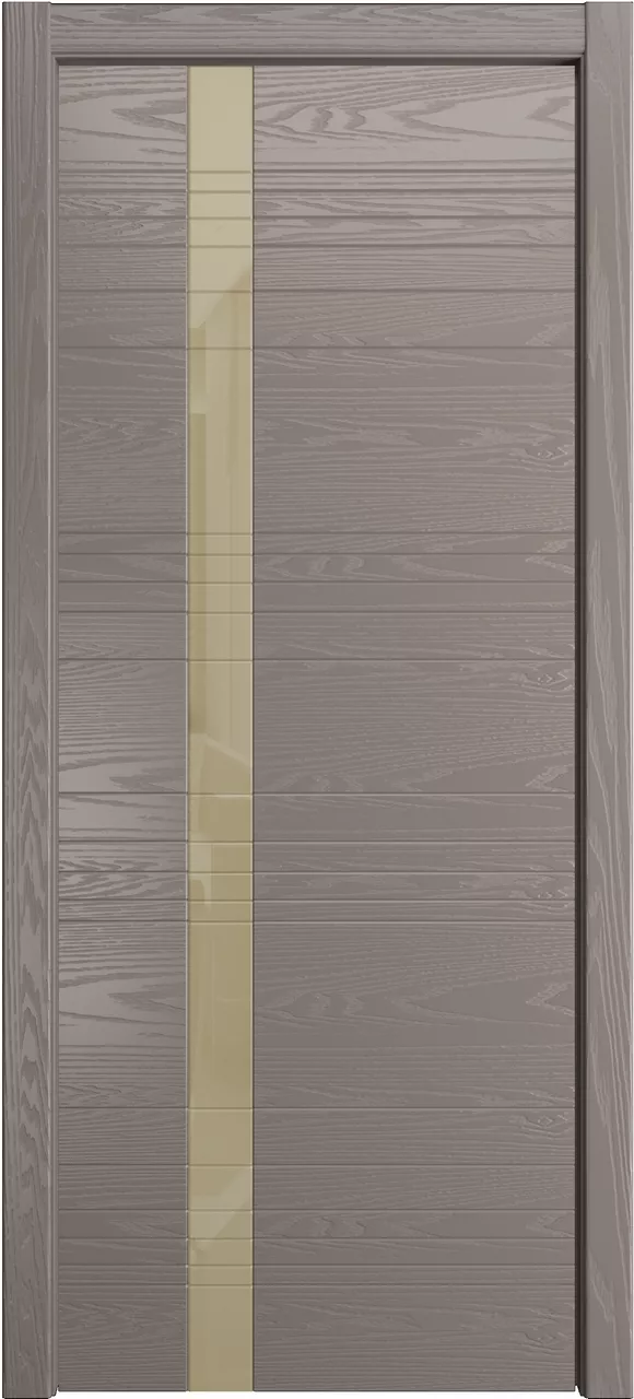 Дверь ID-H ДО имеет каркасно-щитовую конструкцию с фрезерованной поверхностью полотна. Модель остеклена лакобелем и покрыта натуральным шпоном ясеня или дуба на выбор.
