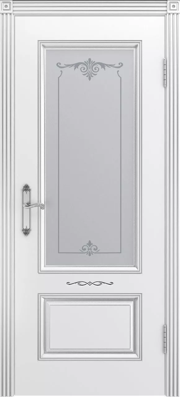 Дверь Аккорд В1 ДО имеет каркасно-щитовую конструкцию с фрезерованной поверхностью полотна, имитирующей филенки. Фигурная фрезеровка на «филенках» отсутствует, есть вензель между «филенками». Остекление на выбор сатинированное или с фотопечатью. Модель покрыта эмалью.