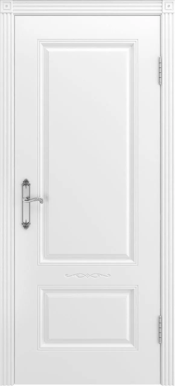 Дверь Аккорд В1 ДГ имеет каркасно-щитовую конструкцию с фрезерованной поверхностью полотна, имитирующей филенки. Фигурная фрезеровка на «филенках» отсутствует, есть вензель между «филенками». Модель покрыта эмалью.