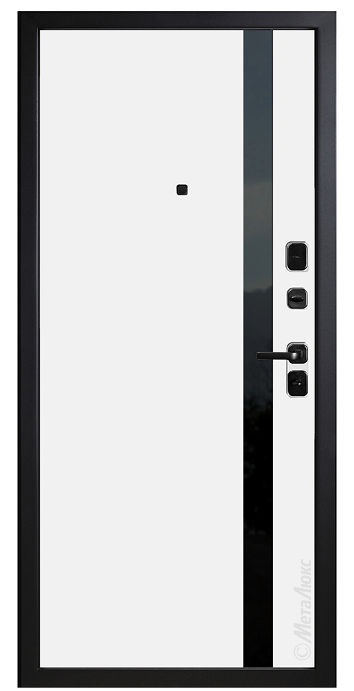Панель МДФ 16 мм, пленка SoftVelvet, цвет «Белый» №17, вставка из черного глянцевого стекла