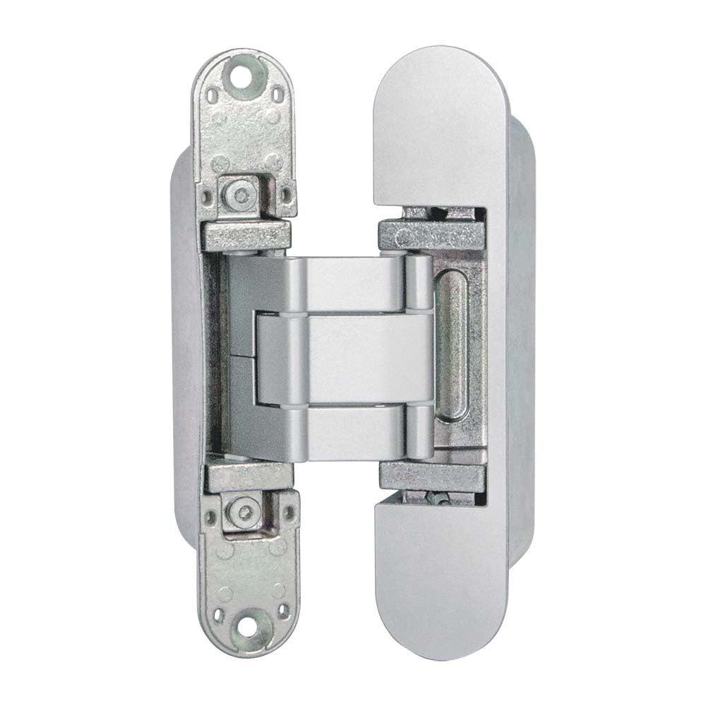 Eclipse 4.1 - универсальная петля скрытой установки подходит для тяжелых межкомнатных дверей. Высокая несущая способность до 70 кг с двумя петлями. Петля находится в 5 мм от края створки для предотвращения деформации во время фрезеровки. Со стороны коробки, благодаря уменьшенным размерам фрезеровки, петля Eclipse 4.1 обеспечивает 13 мм толщины для наличника и возможность фрезеровки даже с уже установленным уплотнителем. Цвет: матовый хром.