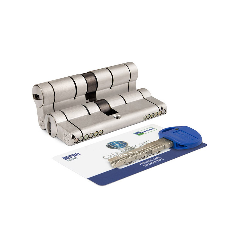 Цилиндровый механизм CP4D464601 серии CHAMPIONS PRO имеет до 16 пинов, гарантирующих максимальную безопасность. Двойная система механической кодировки. Пины контроля профиля ключа специальной формы, которые в случае вскрытия при помощи отмычек , либо методом бампинга, блокируют открываниецилиндра. Более 63 миллионов кодовых комбинаций: идеален для создания сложныхмастер-систем. Специальная фрезеровка для контролируемого слома цилиндра (защита от вырывания). Штифты и заглушки из специальных твердых материалов, защищающих от сверления. Защита ключей от несанкционированного копирования: изготовление дубликатов в авторизованных центрах. Ключ выполнен в современном дизайне с уникальными пинами контроля профиля ключа.  Платисковая съёмна головка ключа с цветными вставками. Для гарантии безопасности ключи икарточка владельца поставляются в запечатанном пакете. Размер цилиндра: 92 мм (41+10+41). Цвет: матовый никель.