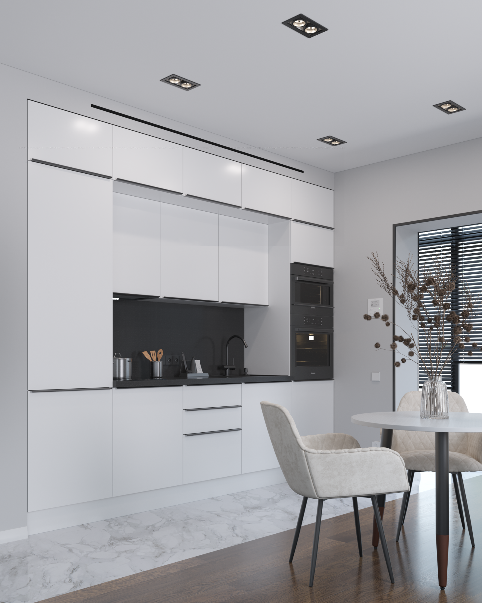 * Кухни выполнены в базовых цветах, которые никогда не потеряют своей актуальности.