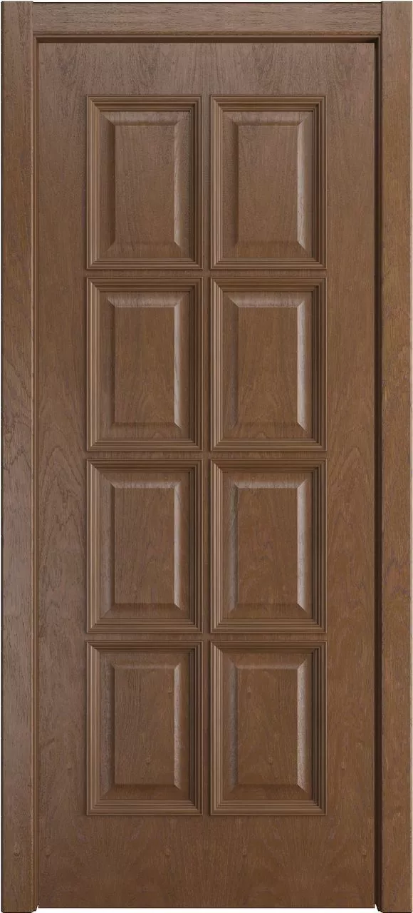 Дверь Палермо ДГ имеет сборную конструкцию с фрезерованными филенками и ступенчатым багетом. Модель покрыта натуральным шпоном ясеня, дуба или американского ореха на выбор.