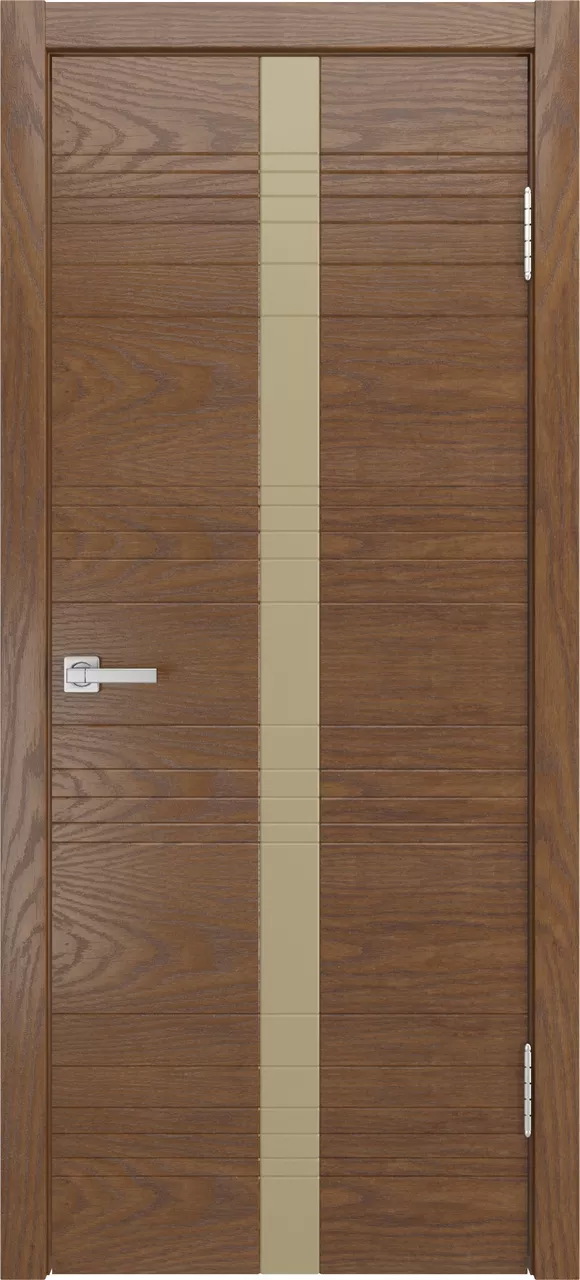 Дверь ID-X ДО имеет каркасно-щитовую конструкцию с фрезерованной поверхностью полотна. Модель остеклена лакобелем и покрыта натуральным шпоном ясеня или дуба на выбор.