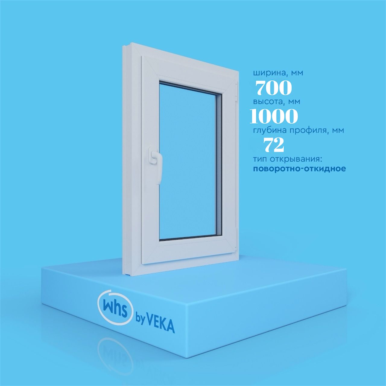 Окно WHS 72, ручка, накладки на петли, подставочный профиль
