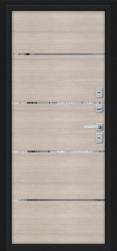 Стальной дверной блок энергосберегающей конструкции с двойным терморазрывом (термомостом) из натуральной пробки и четырехконтурным уплотнением. Поставляется с правым и левым открыванием наружу.