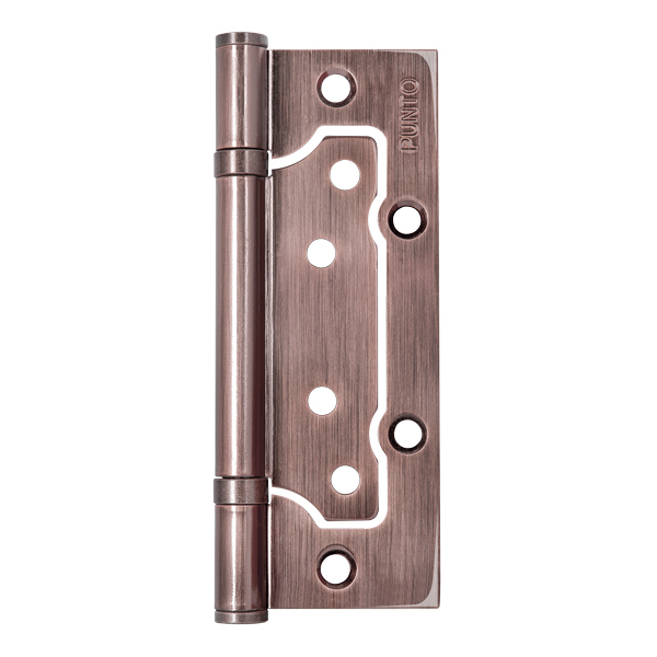 Универсальная дверная петля без врезки Punto 200-2B изготовлена из стали, подходит для дверей левого и правого открывания. Гальваническое покрытие прошло тест на устойчивость к коррозии в соляном тумане и соответствует 1 классу ГОСТ. В петле установлены втулка-подшипники и стальной стержень, что обеспечивает работоспособность 200 000 циклов открывания/закрывания. Максимальная нагрузка на 2 петли 35 кг, на 3 петли 45 кг. Размер петли: 125x2,5. Цвет: медь. Саморезы в цвет изделия в комплекте. Упаковка: картон.